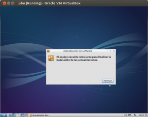 26. Si se actualiza el kernel (como en mi caso) se nos pedirá que reiniciemos el pc. Pulsamos click al botón Reiniciar.