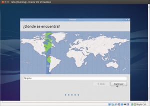 11. Seleccionamos nuestra zona horaria, por lo general el sistema lo auto determina por vía Internet o si no nosotros podemos hacerlo dando click al sitio perteneciente o escribiendo en la caja de texto. Damos click al botón Continuar.