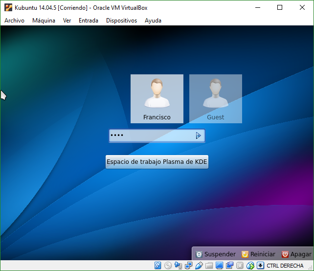 Arrancamos la máquina una vez realizados los pasos anteriores y debe salir esta pantalla donde aparecerá nuestro usuario y debemos meter la contraseña para entrar al escritorio y poder usarlo con total libertad.