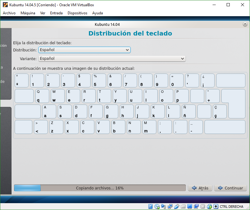 En distribuición del teclado, lo seleccionaremos conforme al que tenemos.