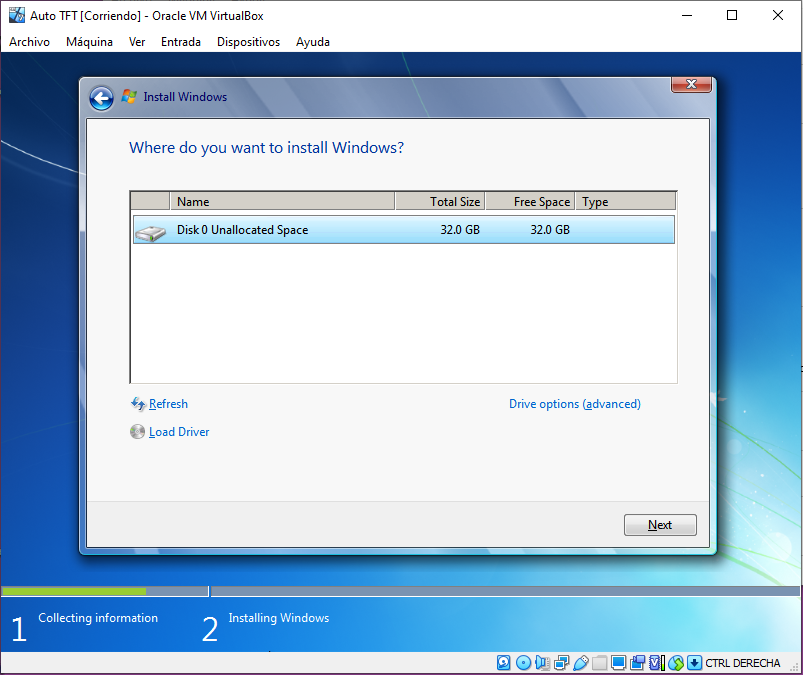 Para empezar hay que crear una máquina virtual con la misma configuración que veréis en las siguientes capturas, además hay que meter la ISO en la unidad óptica.