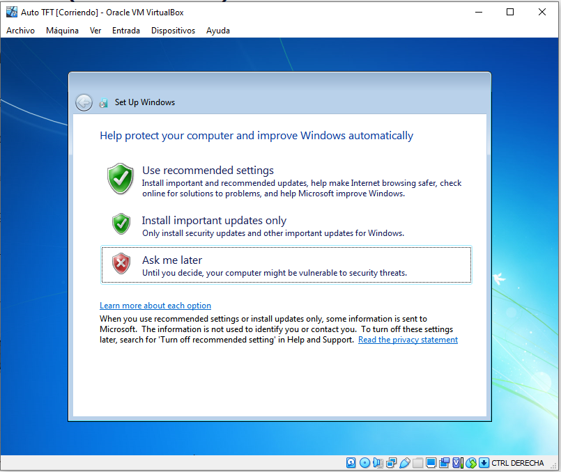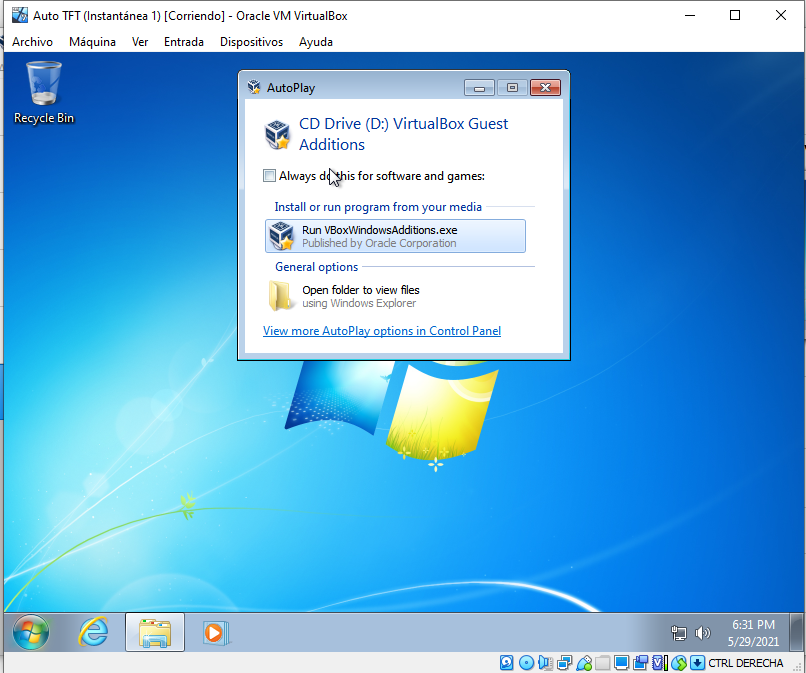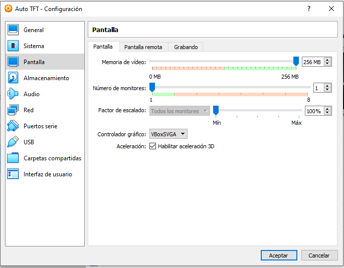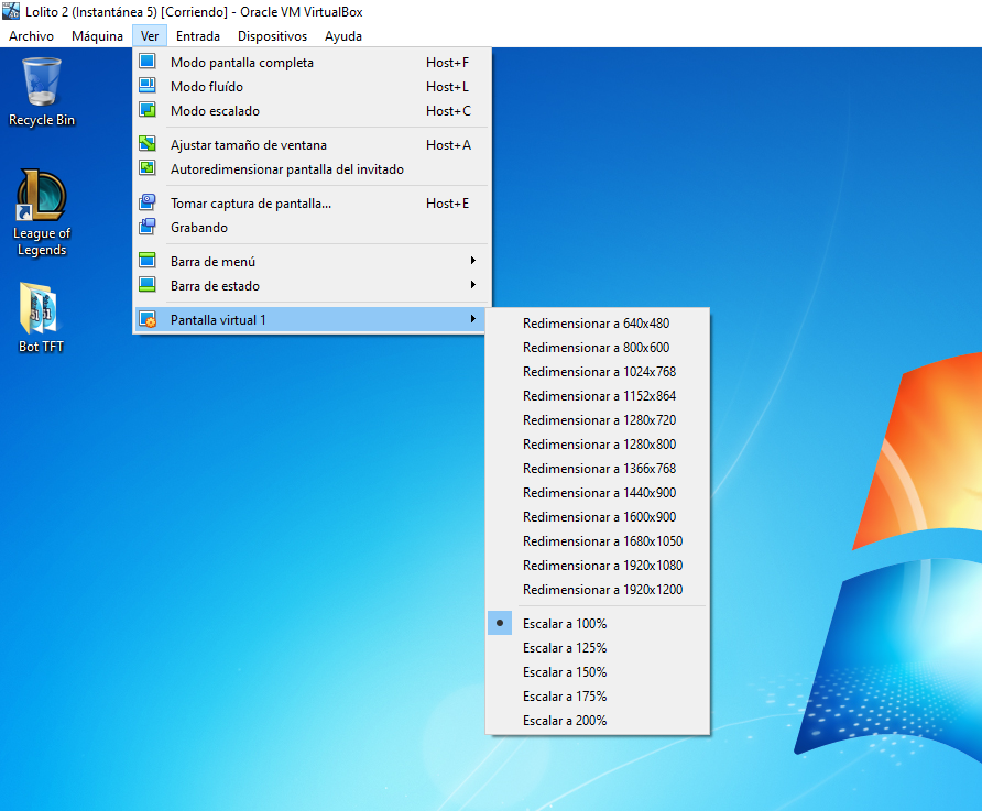 Como recomendación sugiero poner la ventana de la máquina virtual expandida, desactivar el «Autoredimensionar ventada de invitado» y dejar el tamaño a 100%.