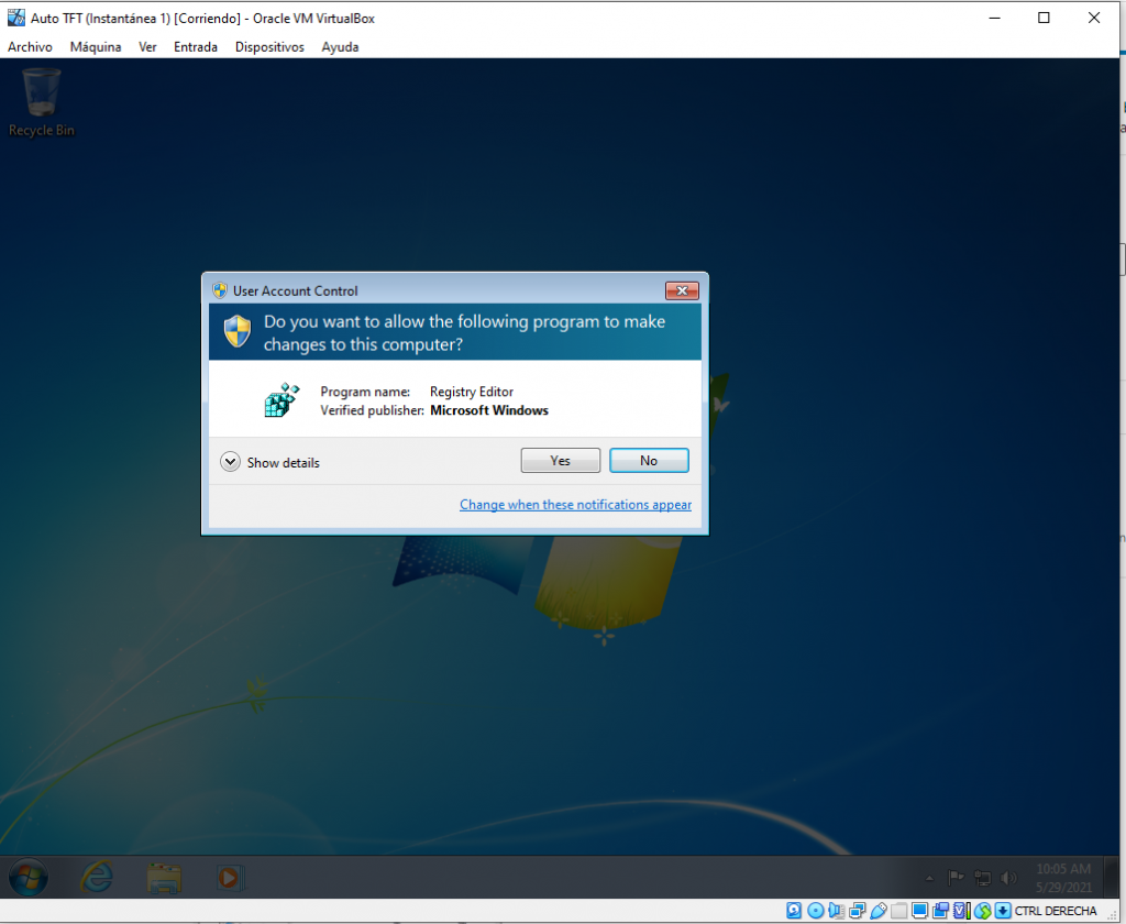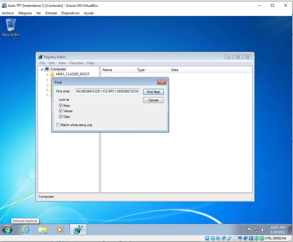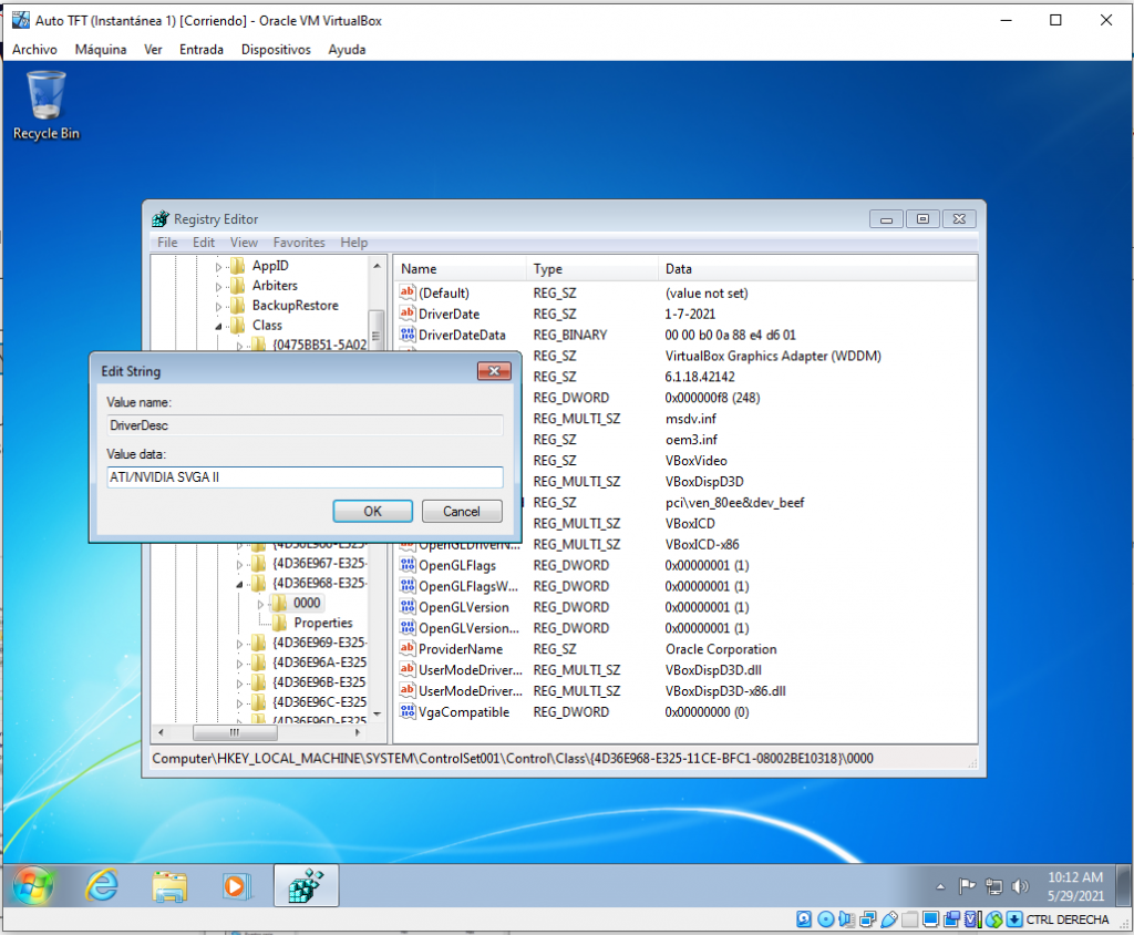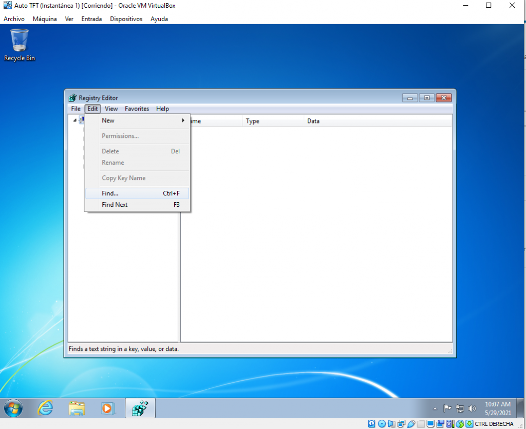 Tras el reinicio accedéis a regedit desde el menú de inicio de Windows y buscáis un registro en concreto para modificarlo como se muestra a continuación.