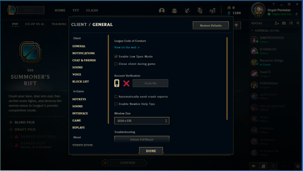 Cuando el cliente se haya instalado completamente toca cambiar la configuración de la parte in-game desde un archivo, ya que league no permite hacerlo desde el cliente.