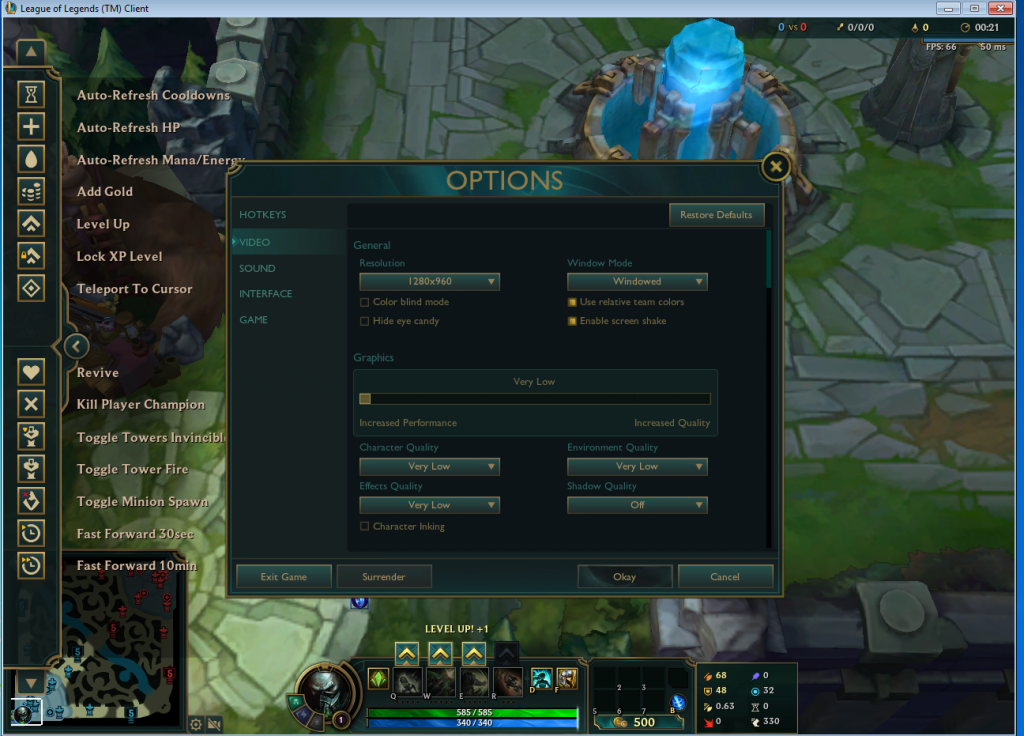 Ahora si todo ha salido bien deberéis entrar a una partida de herramienta de práctica y asegurarse de que tenéis algunos ajustes igual que los míos. Es necesario para que el bot funcione correctamente.