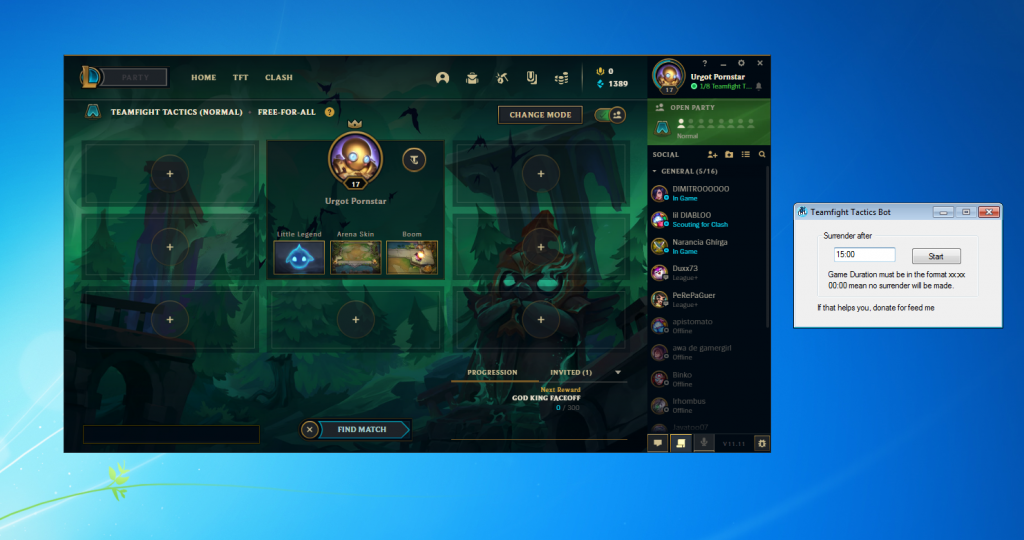 Creáis una partida normal de TFT y en lugar de darle a buscar partida activáis el bot.