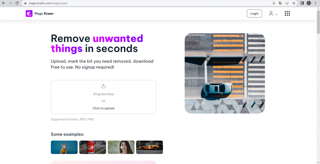 1. Buscaremos en Google Magic Easer y Arrastraremos una imagen hasta el recuadro que ve anteriormente o haremos clic y buscaremos la imagen correspondiente.