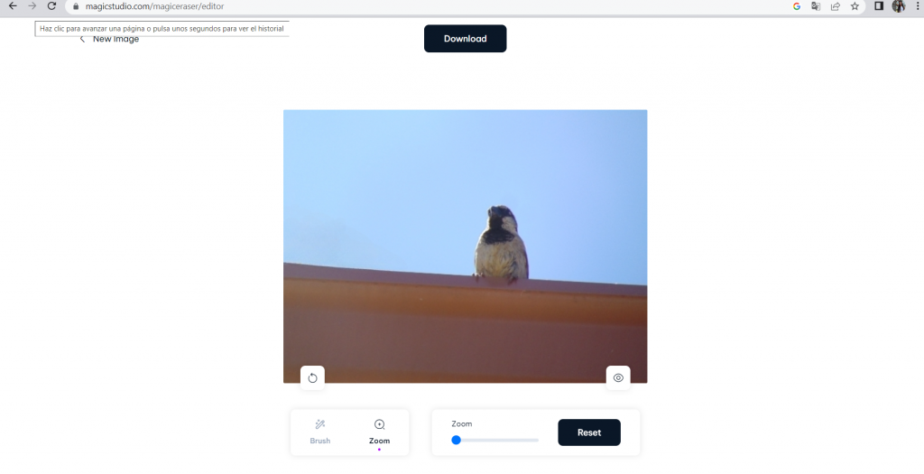 3. En la parte inferior verás tres pestañas: Pincel, Zoom y Original. En el primero realizas la edición, en el segundo puedes acercar o alejar la imagen, y en el último puedes ver la foto original.