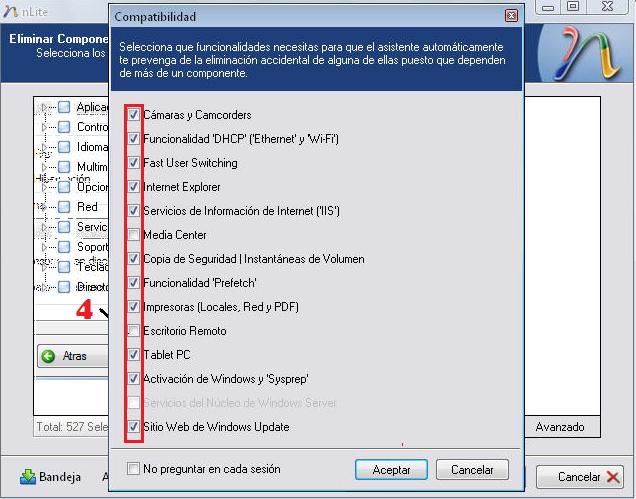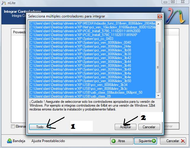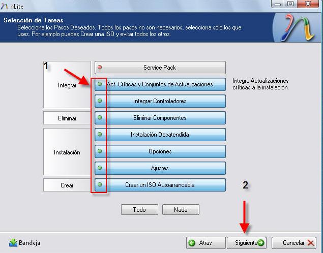 Aquí seleccionaremos lo que queremos modificar de nuestro Windows o integrar, como veis lo he seleccionado todos menos la integración puesto que mi s.o ya tiene el sp3, una vez seleccionado le damos a siguiente.