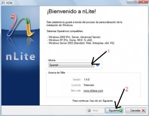Al iniciar por primera vez el nlite nos aparecerá esta pantalla donde le diremos el idioma en el que queremos trabajar, como muestro en la imagen:
