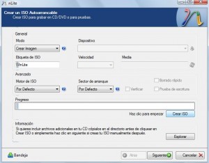 Una vez esté terminado el proceso pasamos a la sección de crear ISO auto arrancable en la que podemos grabar en un Cd o crear una imagen ISO, yo he elegido la creación de imagen ISO.