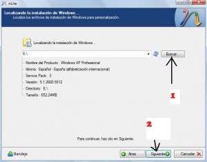 Una vez seleccionado cargara la versión de nuestro Windows y nos dirá si tiene o no el sp2 integrado, le damos a siguiente y nos aparecerá esta pantalla: