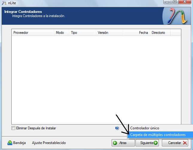 Una vez seleccionado nos aparecerá la siguiente pantalla en la que tendremos que hacer lo siguiente para integrar todos los driver: