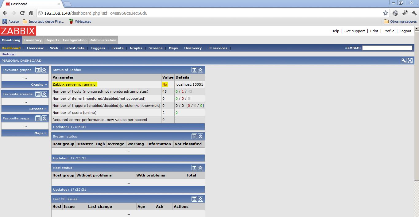 Una vez hemos agregado los agentes a los servidores, podremos controlar su funcionamiento desde el front-end de zabbix. Para ello primero debemos activar la monitorización del servidor Zabbix.