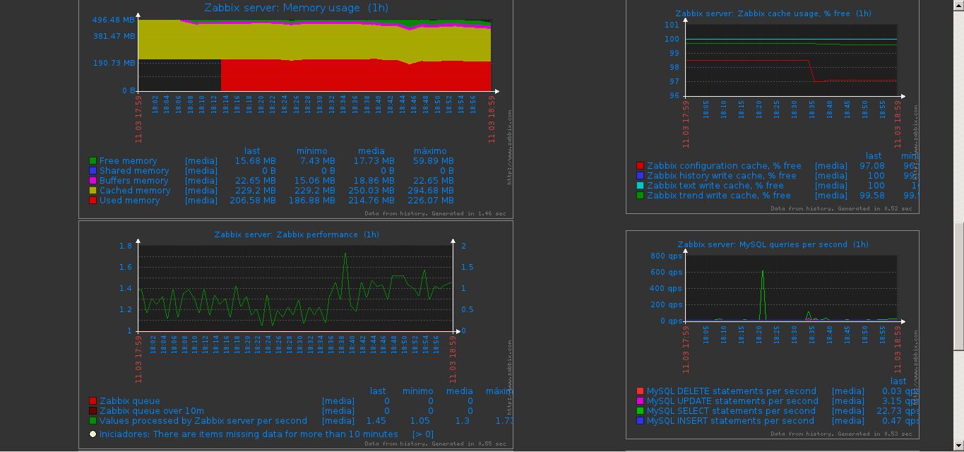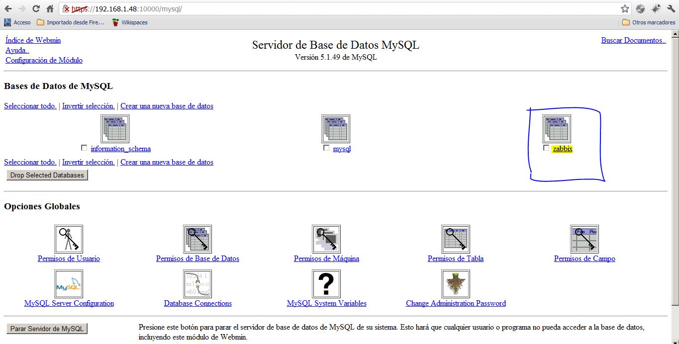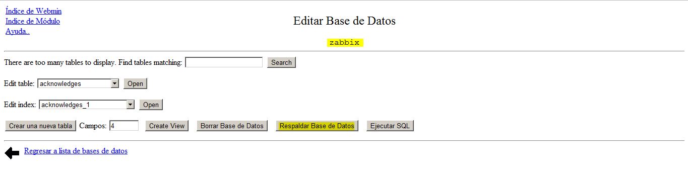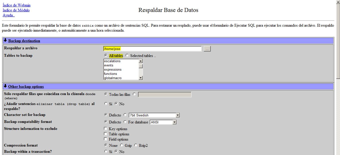 Como vemos es un sistema de monitorización muy completo y potente. Además podemos instalar la aplicación Webmin, que aunque no lleva ningún módulo para controlar Zabbix ya que éste se controla totalmente vía web, si que dispone de un módulo de MySQL muy interesante que nos permite realizar y planificar las copias de seguridad de nuestro servidor Zabbix.