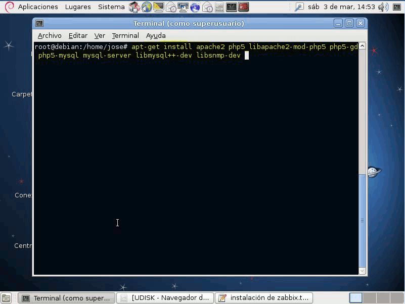 Vamos a realizar la instalación de Zabbix en un equipo con Debian 6.0 «squeeze», la última versión estable de Debian. Para ello seguiremos los siguientes pasos: