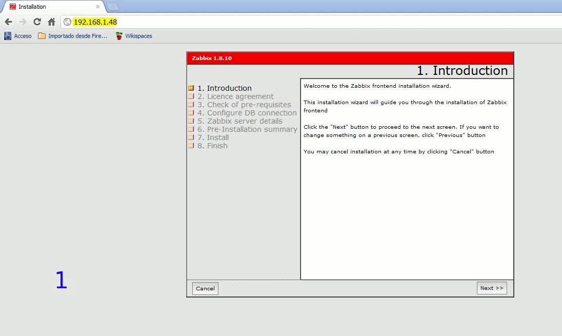 LLegados a este punto,  accedemos a la dirección de nuestro servidor Zabbix mediante un explorador web, escribiendo: http://IP_Zabbix. Desde donde instalaremos el front-end de zabbix: