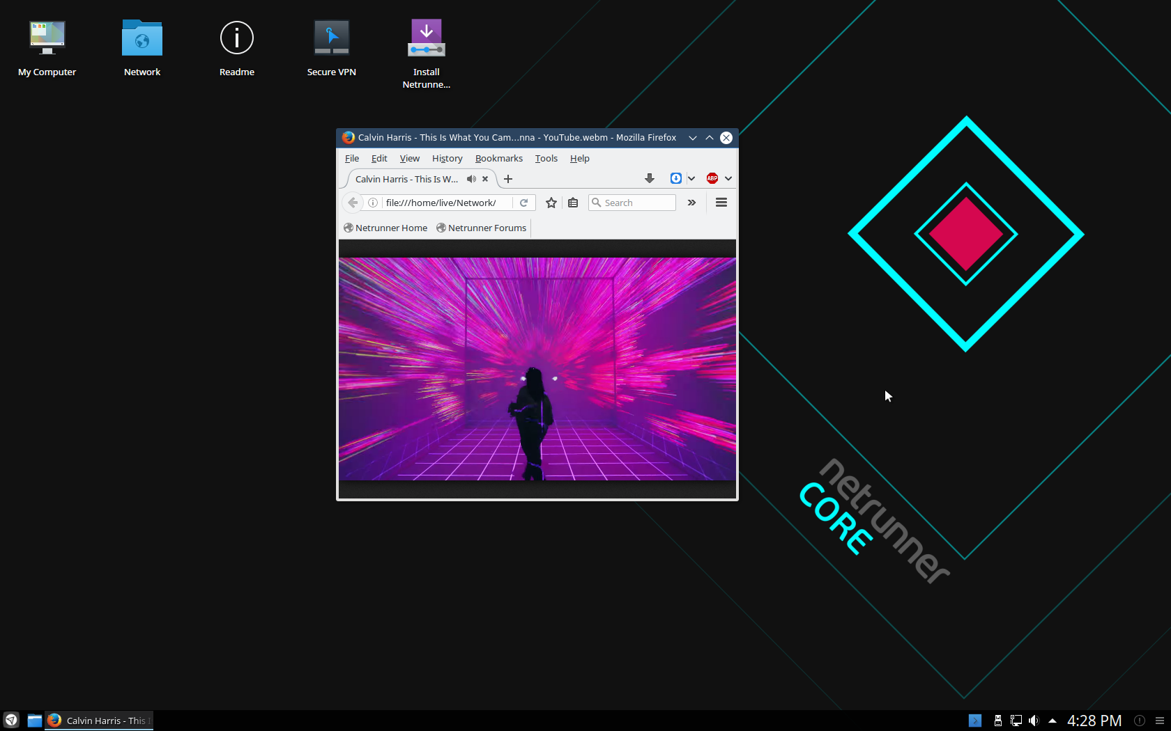 Viene con NoVNC preinstalado y activado (solo tiene que abrir un navegador y escriba “live-pc:5900″, username:live/pwd:live para acceder Netrunner Core desde su navegador).