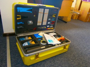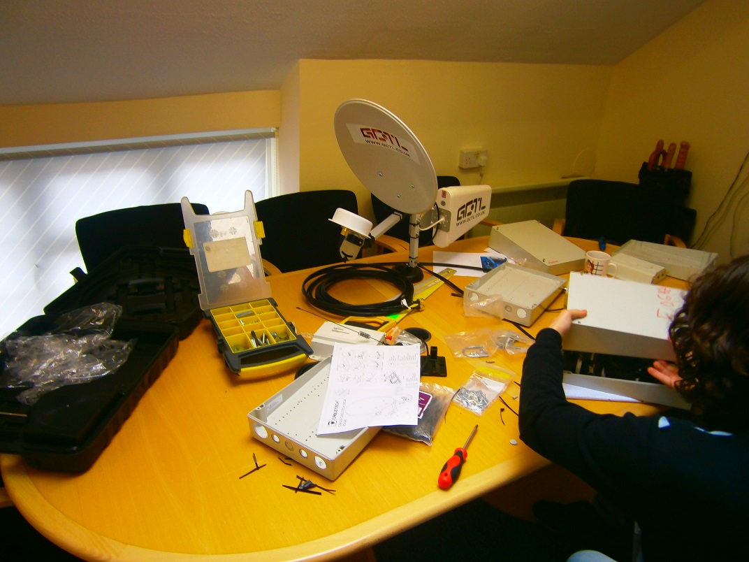 El día transcurre con el curso cisco y montar la caja de conexión, con los cables de entrada RF IN y RF OUT tuvimos mas te un problemilla al intentar meter todos los aparatos en la caja. (típica chapuza in Spanish). Pero bueno al final quedo así y funcionar funciona.
