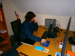 Otro día de trabajo con el curso de Cisco durante la mañana Aitor se pone a arreglar el portátil del compañero Mars.