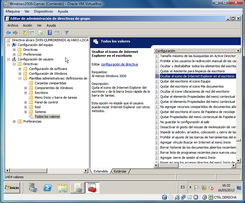 Entramos en las directivas,  en configuración de usuario-> directivas->Plantillas administrativas->Todos los valores.