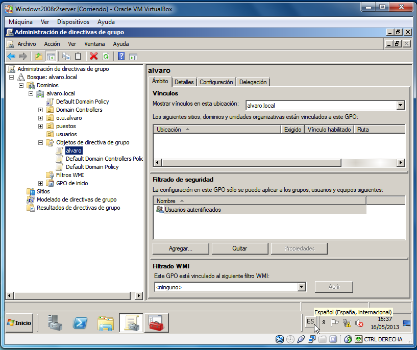 Lo primero que hacemos es entrar en la Administración de directivas de grupo.Dentro del dominio en Objetos de directivas de grupo, en la que hayamos creado, botón derecho y editar.