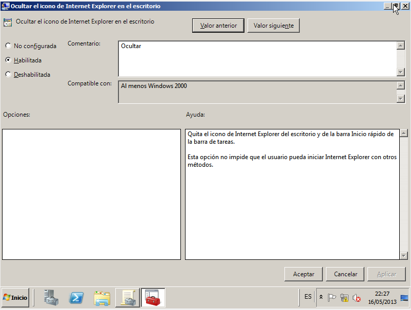 Buscamos el que pone Oculta el icono de Internet Explorer
