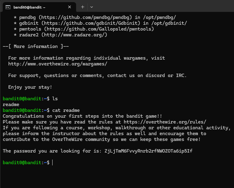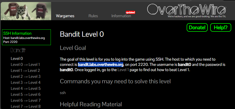 Enlace a la web: OverTheWire: Level Goal: Bandit Level 0