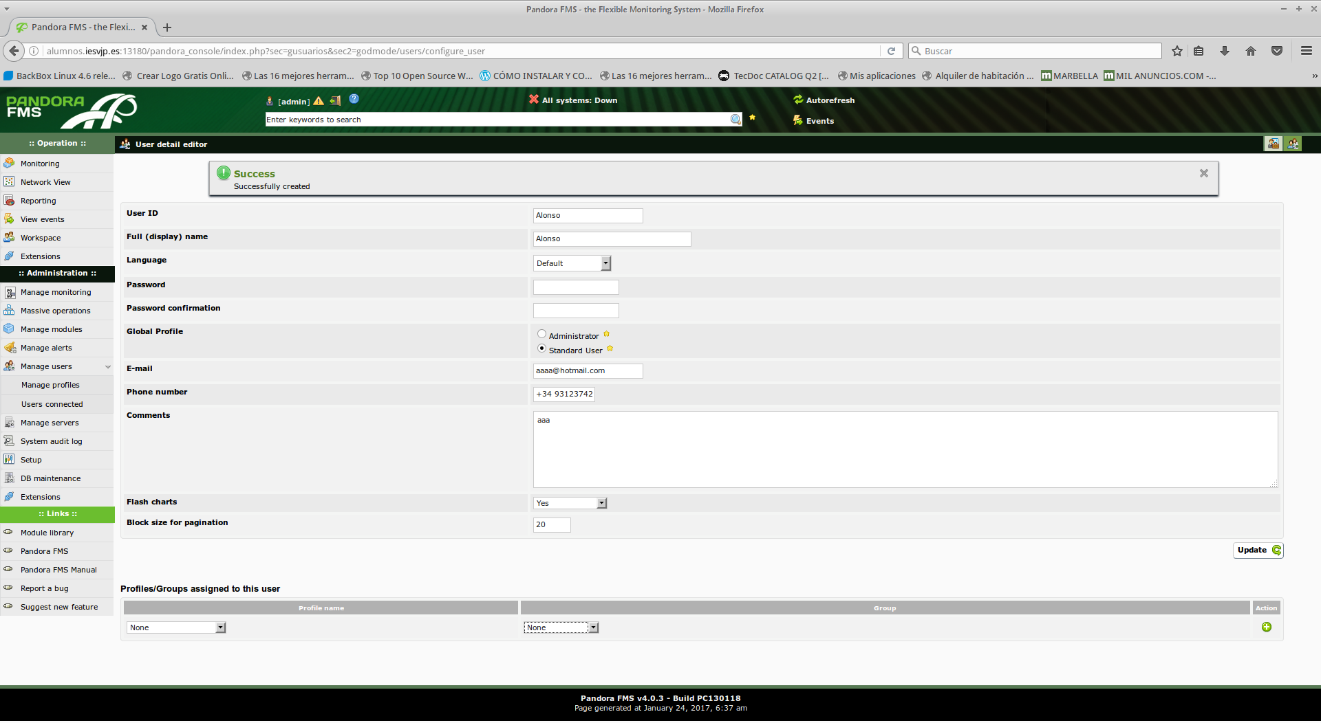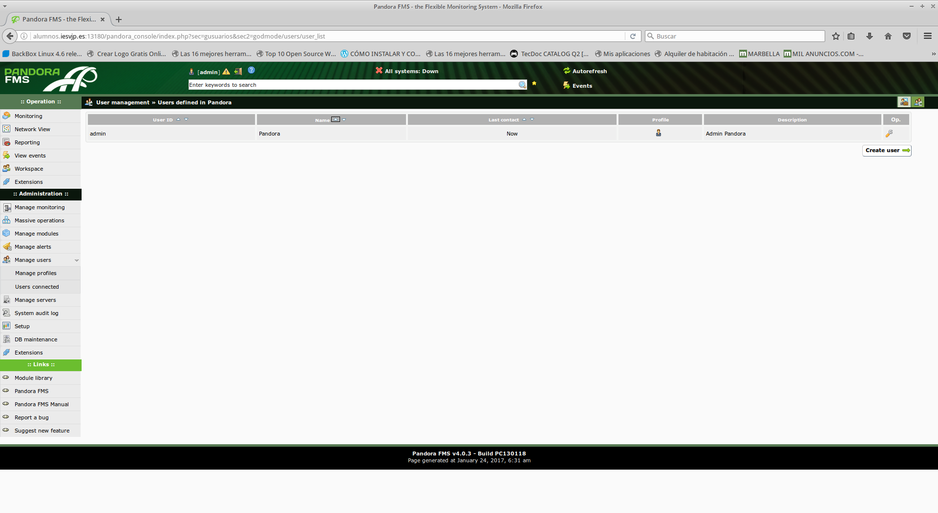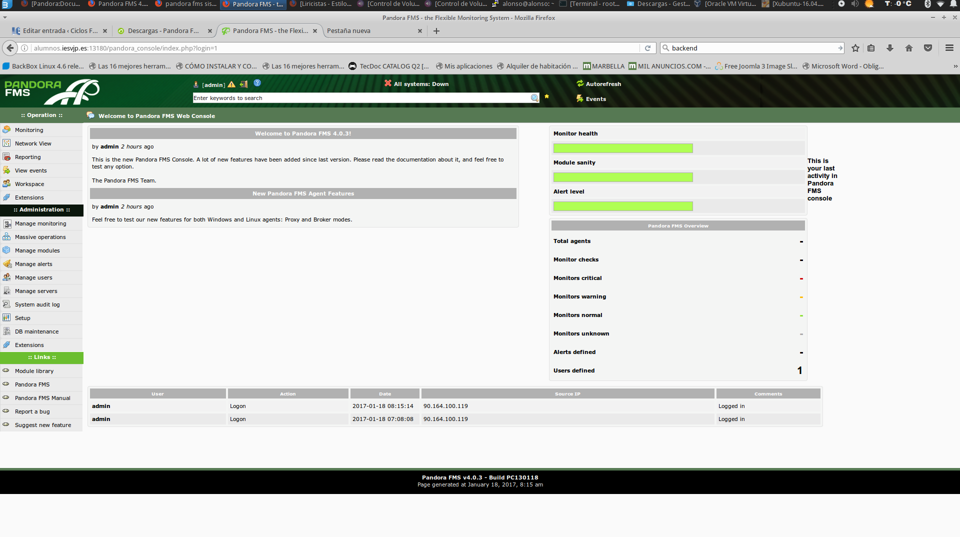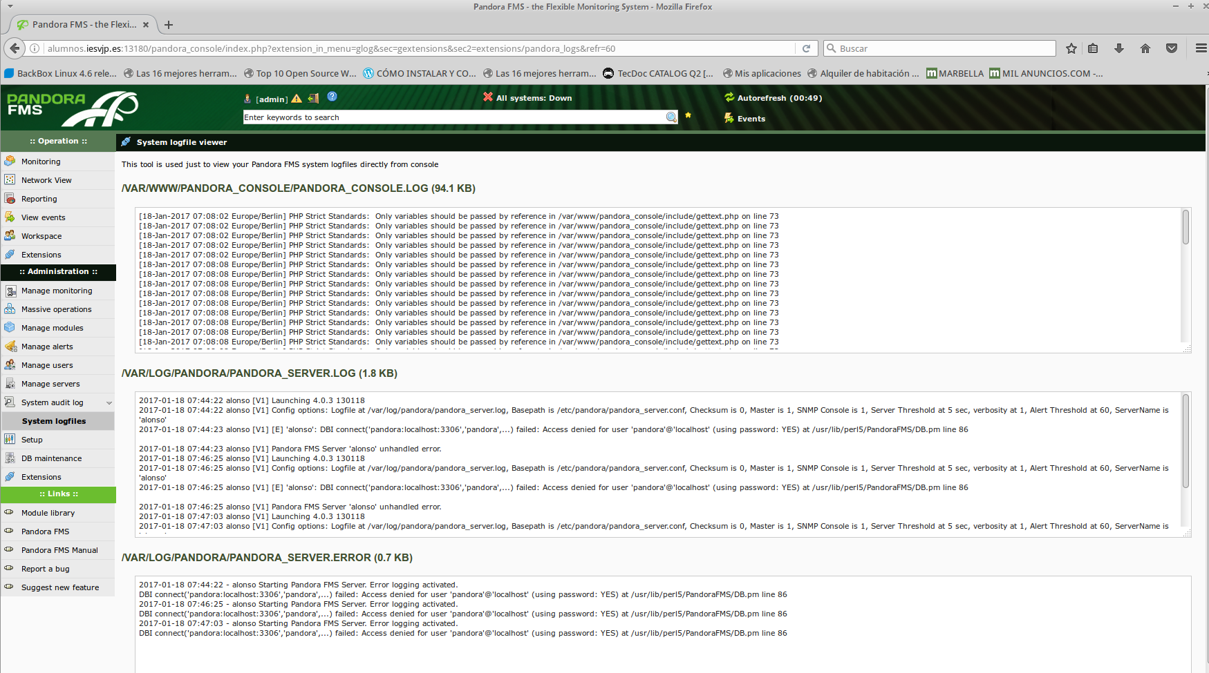 -> Para realizar una comprobación de logs, en la interface web de Pandora hay una pestaña «System audit log» detalla cada movimiento