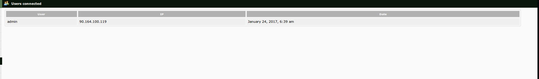 Podemos ver de que Ip publica accede cada usuario en Users Connected :