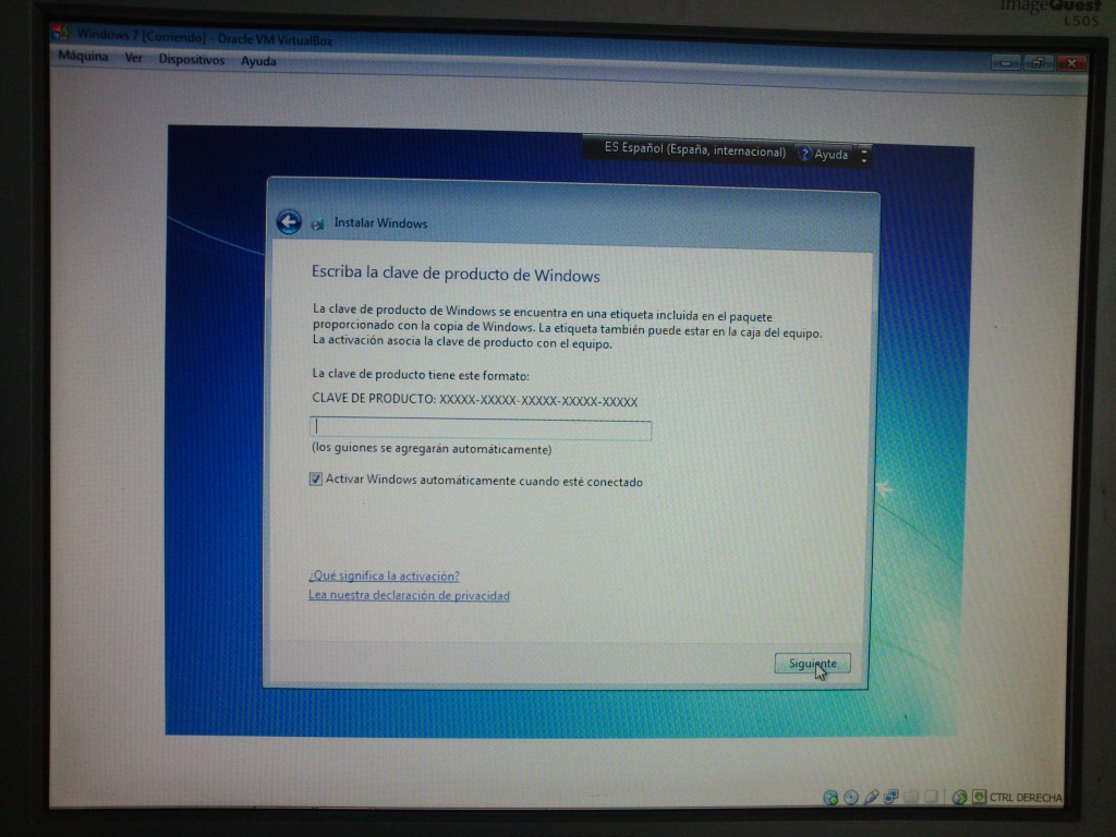 Al no tener la clave (se tiene pero no se ha puesto) le hemos dado a siguiente.