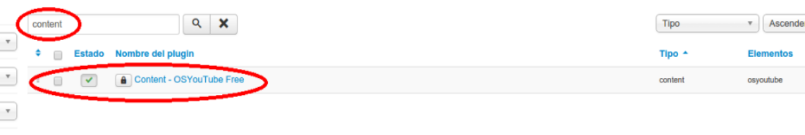 Nos vamos a gestor de extensiones >> gestor de Plug-in >> una vez allí buscamos en la pestaña del buscador “content”