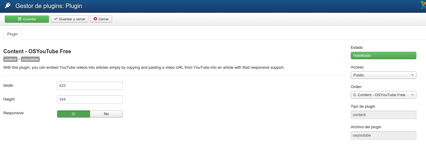 Con el plugin OSYouTube se pueden incrustar vídeos simplemente copiando y pegando un URL de vídeo de YouTube así de fácil. Nos lo descargamos de esta pagina