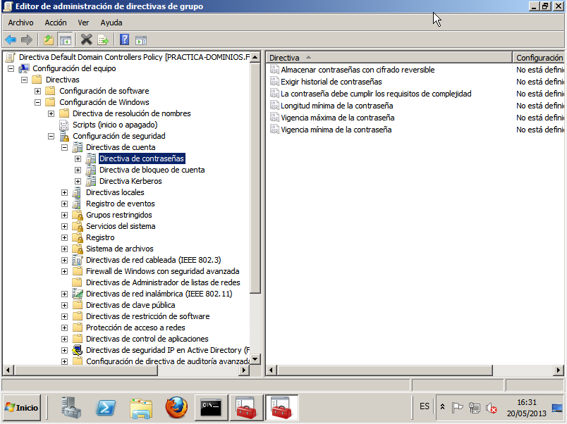 Al cambiarle la contraseña tendremos que cumplir las nuevas directivas, que son que va a tener 4 carácteres como mínimo la contraseña y no hay requisitos de complejidad.