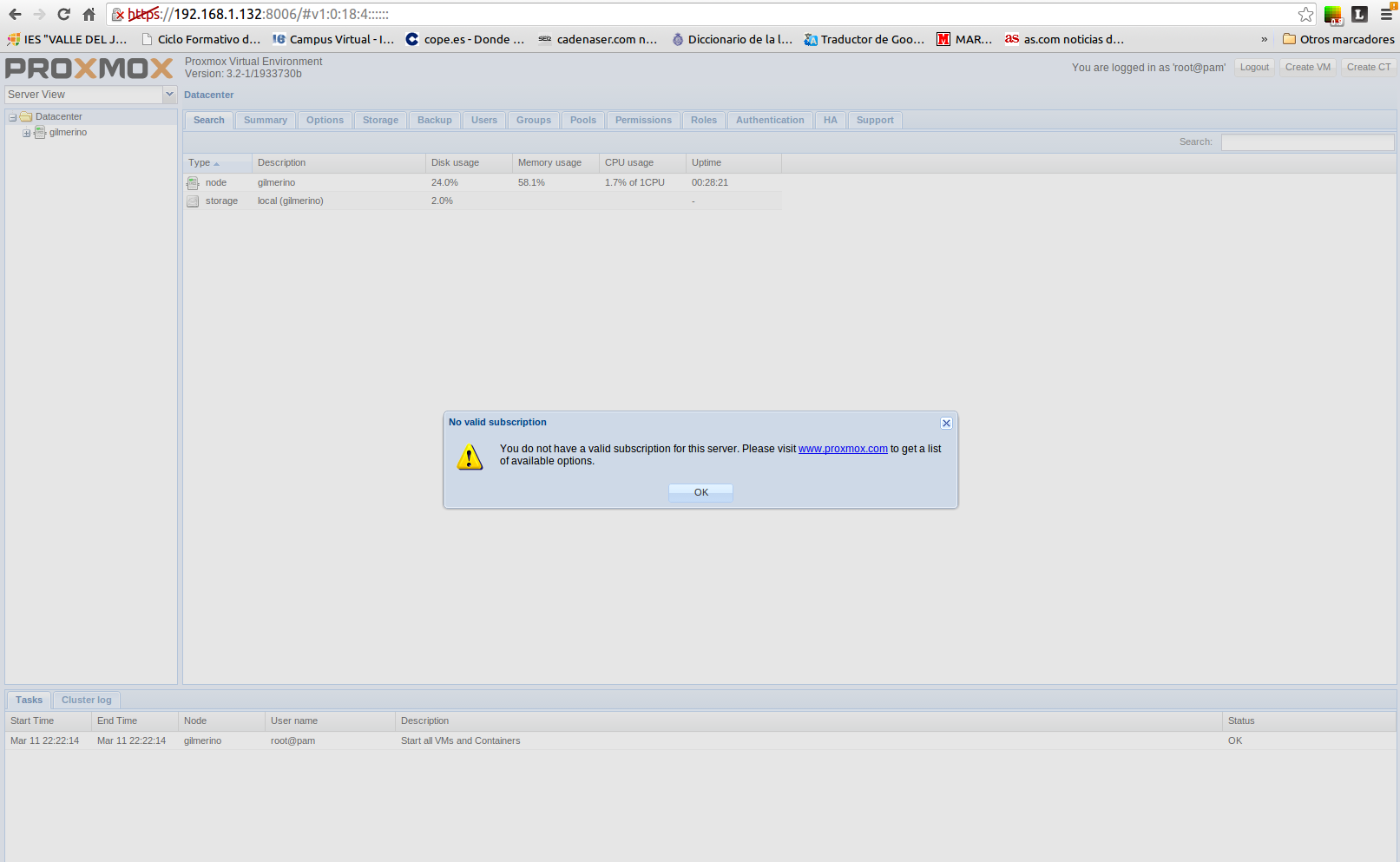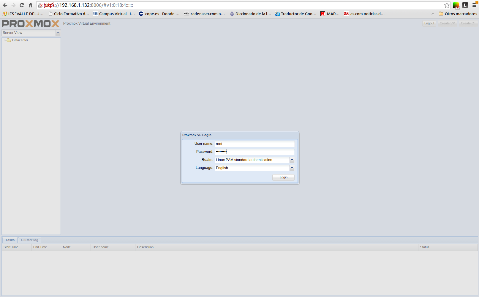 Vamos al navegador introduciendo la dirección facilitada y nos autentificamos.