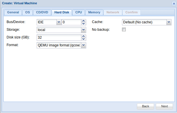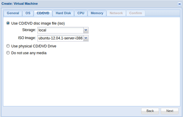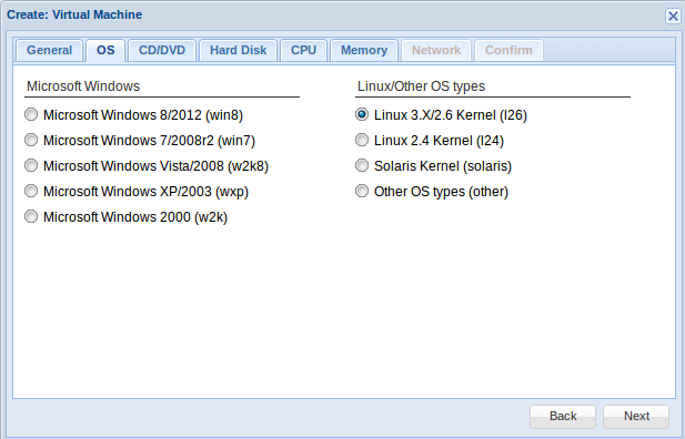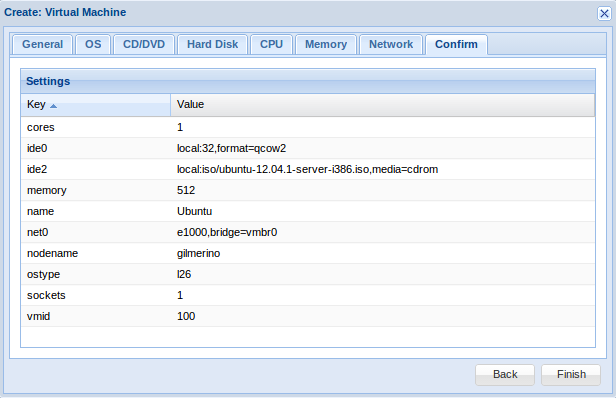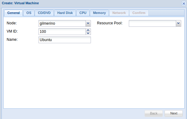 Una vez haya terminado de subir la iso en la parte superior derecha tenemos la opción Create VM, pinchamos y nos aparece un cuadro de diálogos donde debemos rellenar los siguientes apartados: