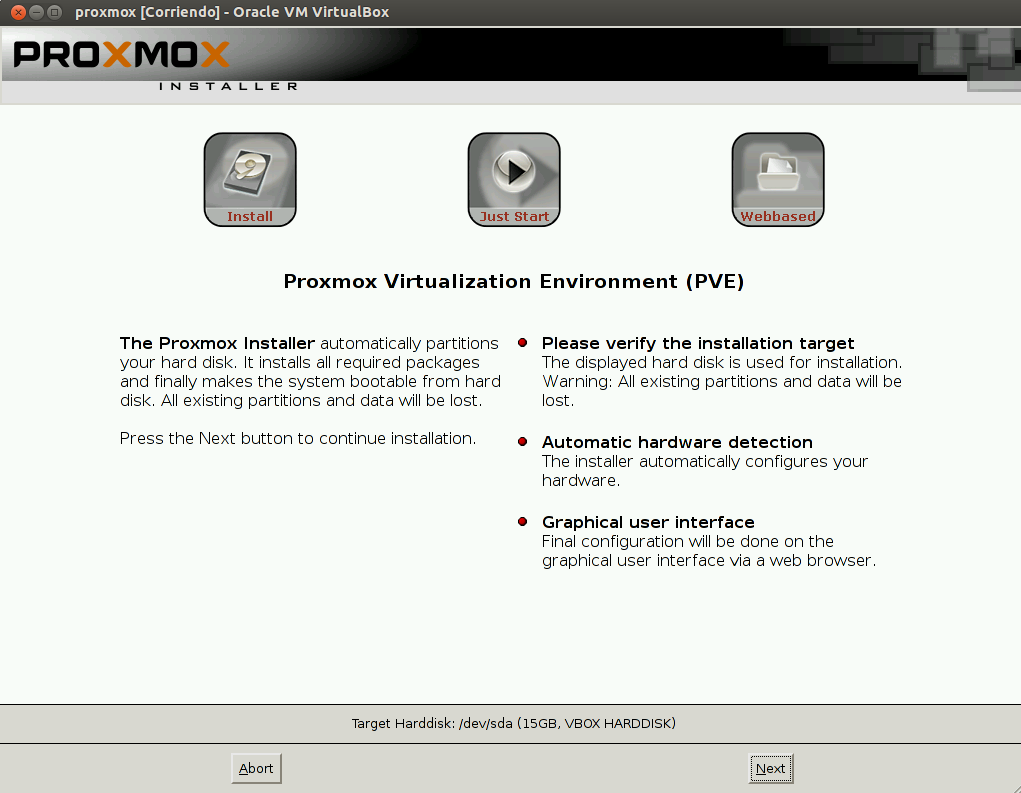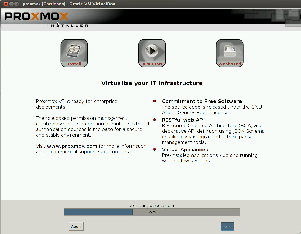 Después de descargar la iso creamos un nuevo sistema virtualizado en virtualbox adjuntado la iso en el cd/dvd virtual y comanzamos la instalación.