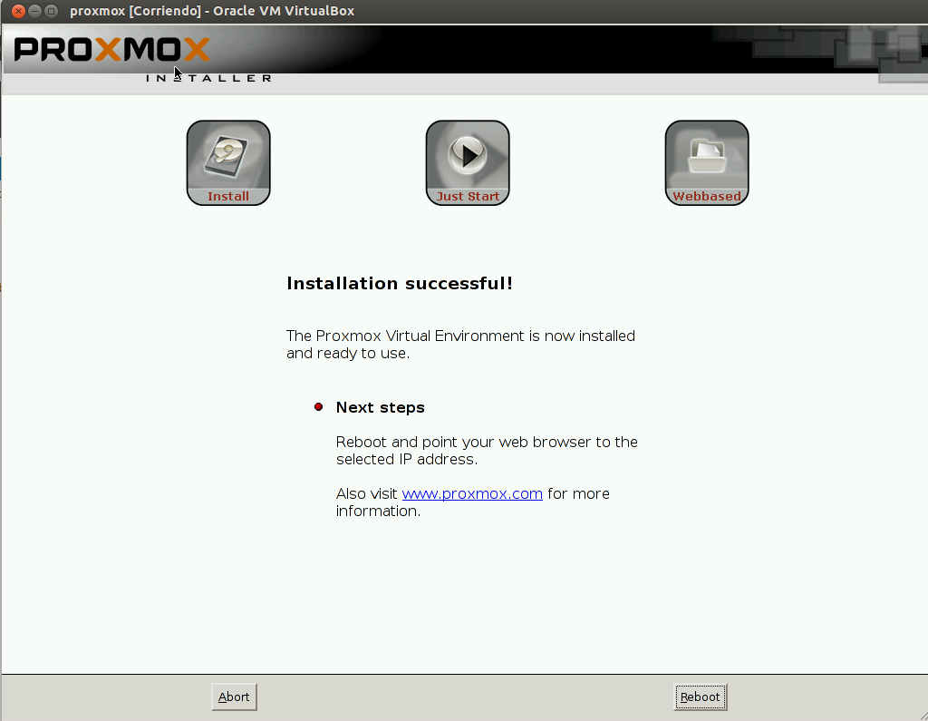 Después al termino de la instalación aparece que la misma se ha ejecutado correctamente, a continuación debemos reiniciar pero antes quitamos la iso de instalación.