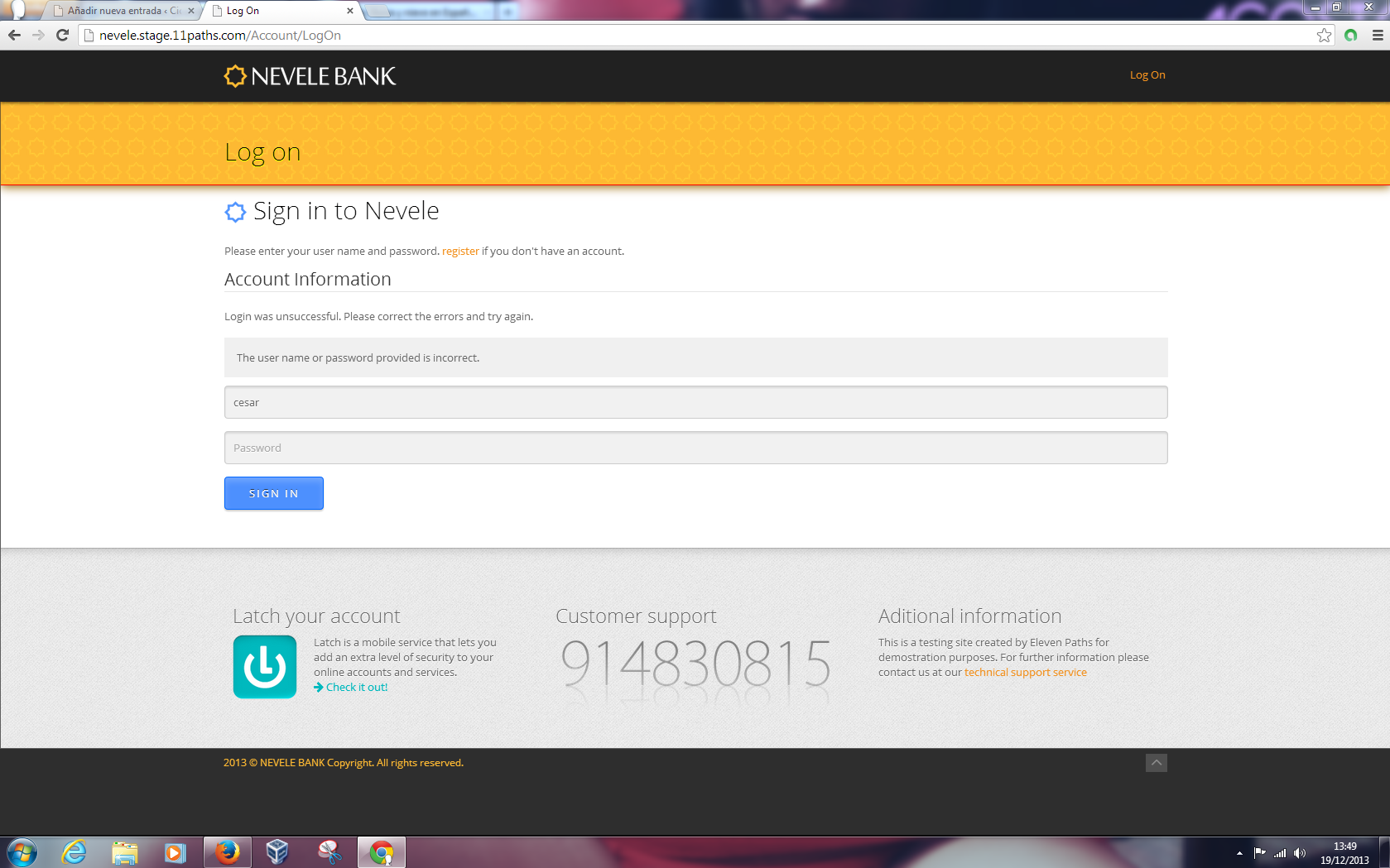 Pero al intentar iniciar sesión nos dará error y el sistema lacth nos avisará.