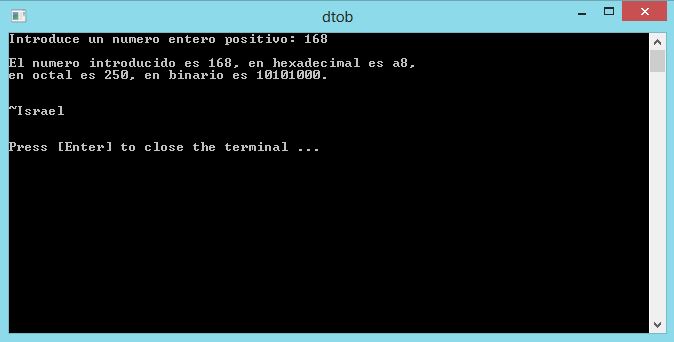 He subido el código, escrito y comentado por mí a IDEONE.com . También contiene el ejercicio anterior, que es mostrar el numero dado en hexadecimal y octal.