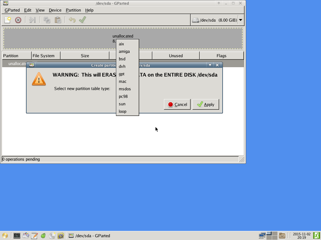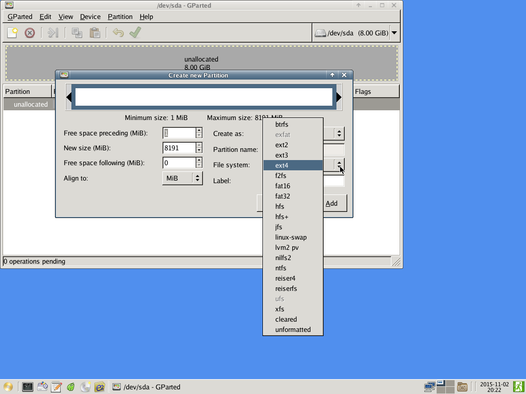 Con esta herramienta podemos crear una partición de diferentes tipos como vemos a continuación.