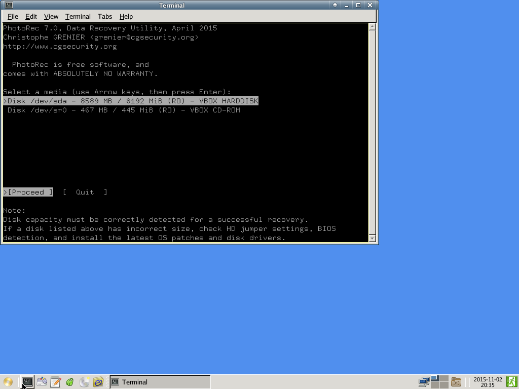 También podemos encontrar una herramienta para recuperar archivos dañados o perdidos de nuestros disco duro. En este caso su nombre es Photorec. Los archivos que puede recuperar son archivos multimedia y archivos Pdf.