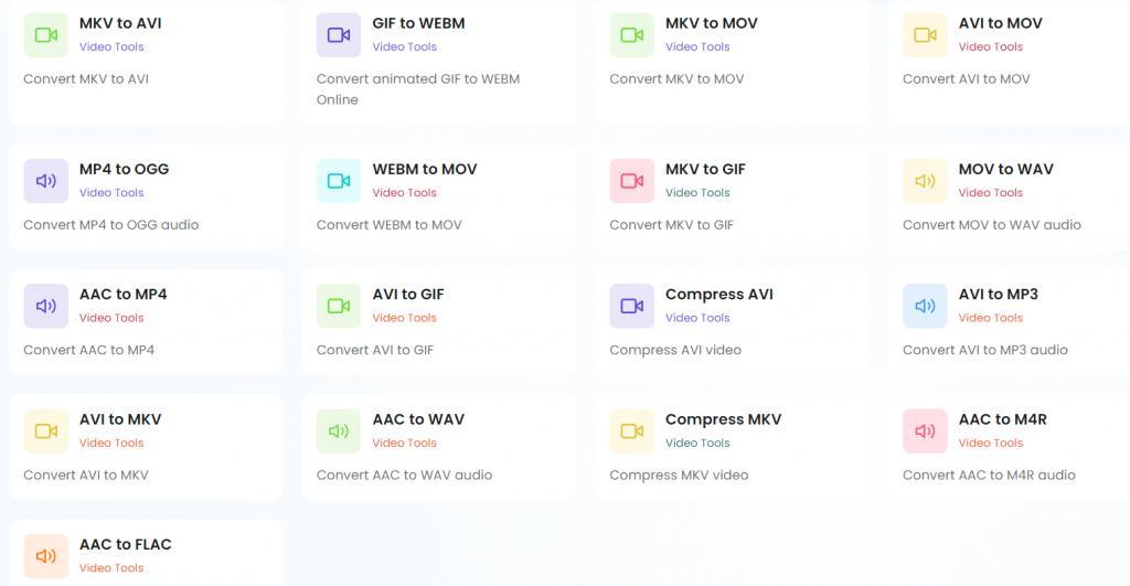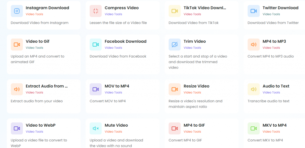Las herramientas que nos ofrecen para la parte de videos son herramientas que nos permiten cambiar el formato, para convertir un video a gif… Estas son todas las opciones de la edición de los videos.