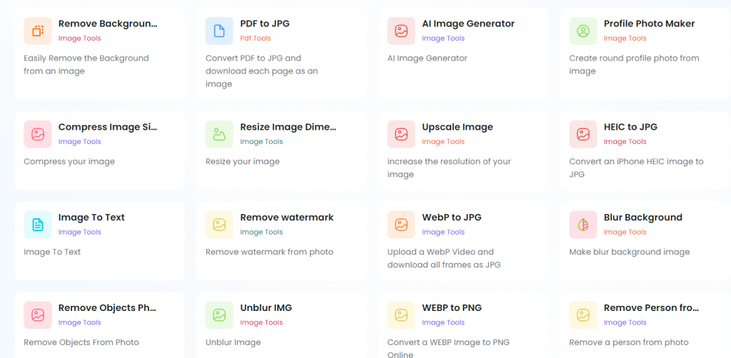 En el caso de las imágenes podemos borrar el fondo, generar imágenes aleatorios, crea una imagen de perfil redonda a partir de la tuya, cambiar el formato… Estas son las herramientas que encontraremos.