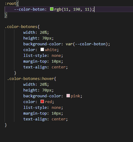 Primero tenemos que agregar a nuestro hoja de CSS un elemento llamado root donde escribiremos la variable que queramos darle y eliminar el color que le hemos asignado al background-color, de esta manera, podremos cambiar el color de todos los botones sin necesidad de tener que aprendernos el color específico que le damos a nuestra página o cambiarlos uno a uno.