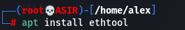 Una vez que ya tenemos la BIOS/UEFI configurada, debemos configurar nuestra interfaz en KaliLinux, para la configuración de ella usaremos el paquete ethtool que tendremos que instalar, para instalarla necesitaremos los permisos de root.
